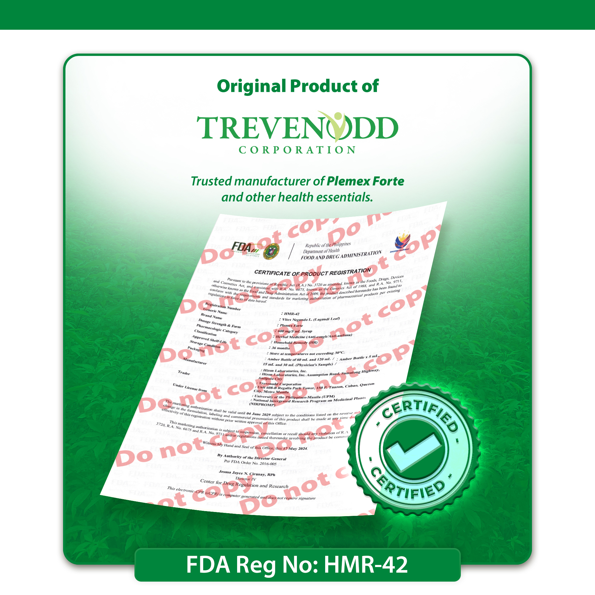 Lagundi became the eight officially registered ang licensed medicinal herb under the Philippine Department of Health (DOH).